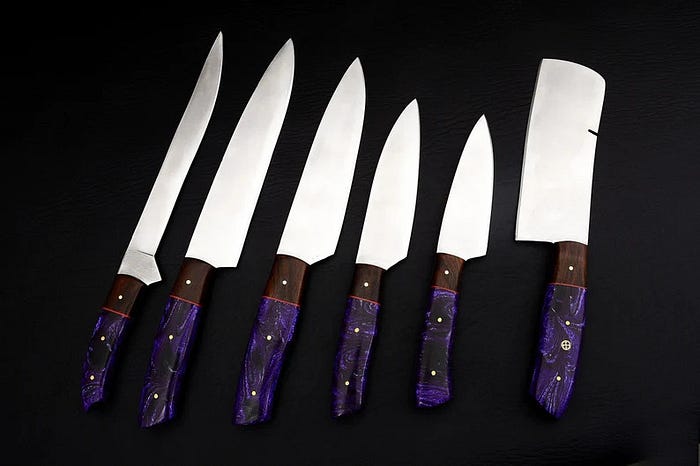 In the realm of culinary arts, the right tools can transform your cooking experience from ordinary to extraordinary. Whether you’re a professional chef or a passionate home cook, investing in high-quality kitchen knives is essential. Today, we explore the world of 6 Piece Custom Handmade Kitchen Chef Knife Set, where functionality meets artistry with handles crafted from walnut wood and purple resin.
