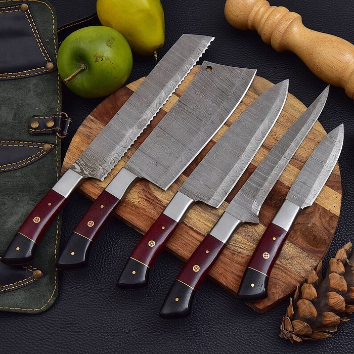 In the world of gastronomy, the quality of your tools can greatly influence the artistry of your culinary creations. Whether you’re a professional chef or a passionate home cook, a set of high-quality kitchen knives is indispensable. Today, we delve into the realm of a 5-piece handmade Damascus kitchen knife chef’s set, complete with a leather roll for convenient storage and transport. This exceptional set promises to elevate your culinary experience to new heights.